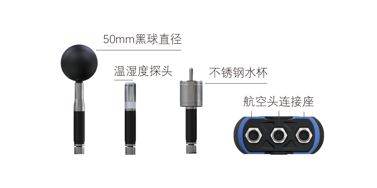 主機、黑球溫度探頭、濕球溫度探頭、(干球)溫濕度探頭、軟件(U盤)、儀器箱